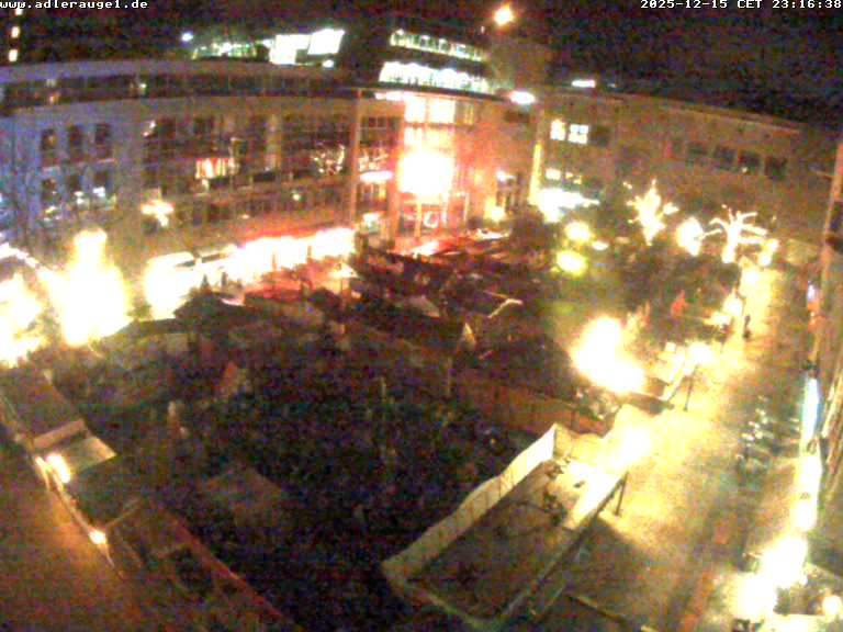 Das ADLERAUGE ist eine Mobotix-Kamera unter dem Dach der Adler Apotheke mit Blick auf das lebendige Treiben auf dem Alten Markt.