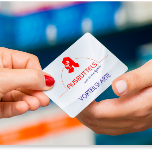 *Beim Kauf von verschreibungspflichtigen Arzneimitteln dürfen keine Vorteilstaler gewährt werden. Ab 7,50 € bedeutet nicht je 7,50 €! Die Ausbüttels Taler sind eine unverbindliche Aufmerksamkeit auf freiwilliger Basis.